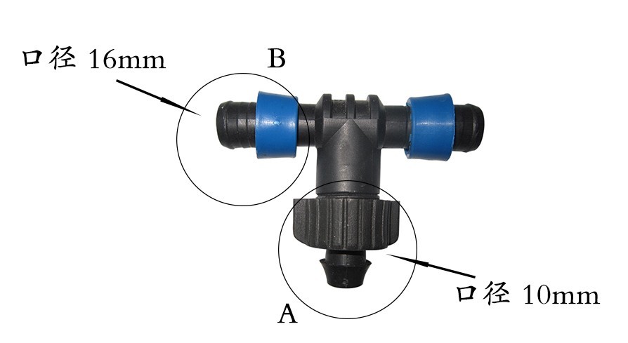 产品介绍:水带拉环旁三通是一种常用的滴灌配件,它一般与PE薄壁水带连接,使用时需配合打孔器一同使用。