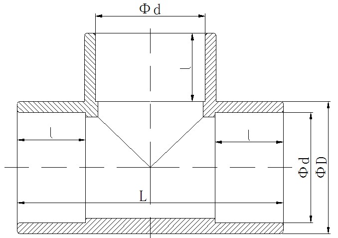 其中“ΦD”表示管件公称外径,“Φd”表示管件公称内径,“L”管件长度,“l”表示管件承插口长度,,1.0MPa=10公斤